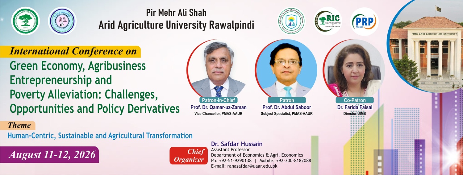 The conference focuses on the role of green economic transitions, agribusiness entrepreneurship, and inclusive development strategies in addressing poverty, unemployment, food insecurity, and environmental degradation. Special emphasis is placed on policy derivatives, institutional reforms, and practical solutions relevant to Pakistan and other developing countries, while maintaining global relevance through international perspectives.