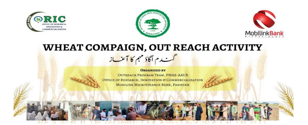 The event of the Farmers Out Reach Program (Rawalpindi Group) commenced with the recitation of the Holy Quran by Dr. Sajid Mehmood (Assistant Professor, Department of Plant Pathology) and the inauguration of the wheat sowing ceremony in the Demonstration Plot, aimed at providing farmers with valuable insights on adopting new production technology in the Potohar region. Dr. Gulshan Irshad (Associate Professor and Convener of the Rawalpindi Group for OutReach Program) led the orientation session, emphasizing the importance of wheat campaigns all over the Punjab province. She encouraged the farmers to grow high- yielding wheat varieties developed by the different research organizations in Pakistan. Dr. Saad Malik and Dr. Munir Ahmed told the farmers about selecting suitable wheat varieties for the Pothohar region to continue this vital discussion. The program also featured a demonstration conducted by Dr. Iftkhar Ahmed (Program Leader at NCCP, NARC, Islamabad) and Dr. Tariq Sultan (Director, Land Reforms, NARC, Islamabad) focusing on seed dressing with biofertilizers, highlighting its significance in enhancing crop yield and quality. Another critical aspect covered was the diagnosis and management of wheat diseases, which was elucidated by the expertise of Dr. Sajid Mehmood, providing farmers with essential measures to safeguard their crops from potential threats.